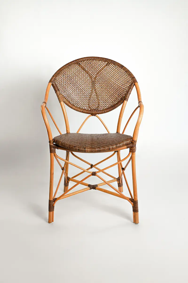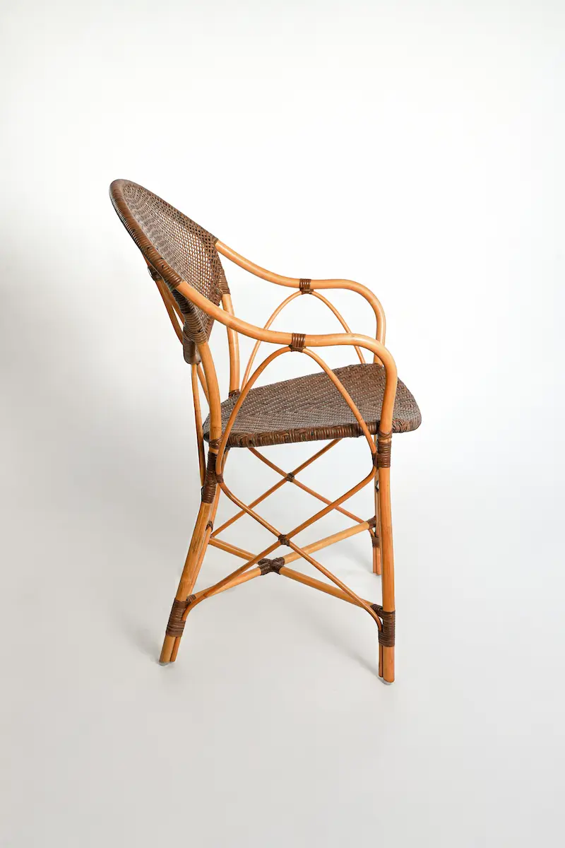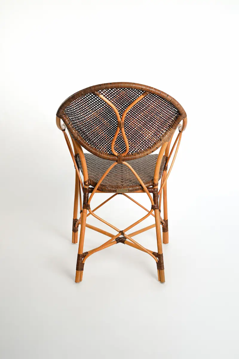 Our artisans have masterfully woven fine threads of natural rattan to create the comfortable, rounded back and classic seat. Its slender profile and warm, candy-brown hue add a touch of worldly charm to any room. A beautiful nod to our Indian heritage, the Sutra Dining Chair is a celebration of lightness, connection, and the enduring art of handcrafted furniture.
